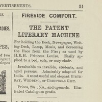 Fireside Comfort advertisement for "The Patent Literary Machine."
