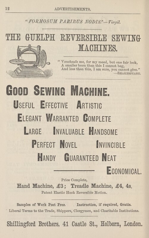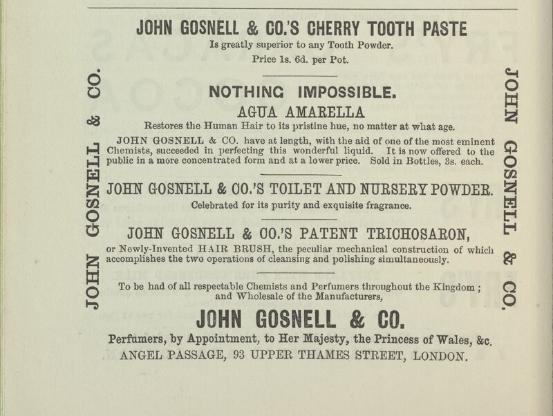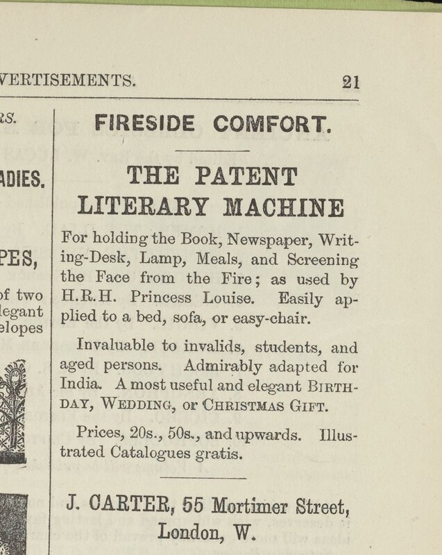Victorian-era advertisements frequently reference patents in their copy, referring to “patented” processes and products to emphasize the use of new technologies and resulting inventions. Prior to 1852, British patents were poorly regulated, and by the Great Exhibition of 1851, which showcased the very latest and best in British ingenuity and engineering, legislators in parliament at both House of Commons and House of Lords were engaged in the reading of amendments to the patent law. By the time of Middlemarch’s printing in 1872, the amended Patent Bill of 1852 had passed into law, offering intellectual property protection to inventors and innovators at a lower cost. It’s strike that the language of patents is still very much in evidence in advertisements nearly twenty years after legal protections were strengthened, and offers insight into Victorian modes of thinking that conflated the patent with the larger discourse of productivity, innovation, and accomplishment across the period.